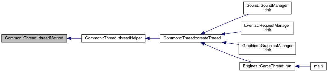 Implemented in Sound::SoundManager, Events::RequestManager, Graphics::Aurora::AnimationThread, and Engines::GameThread.